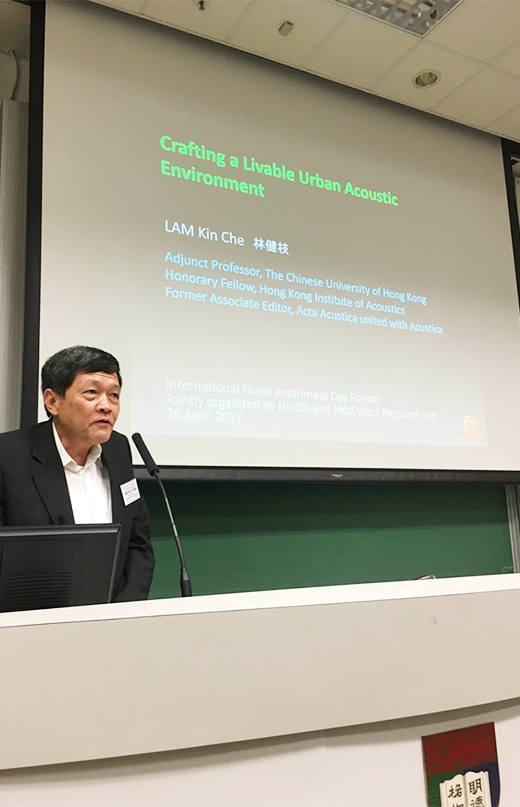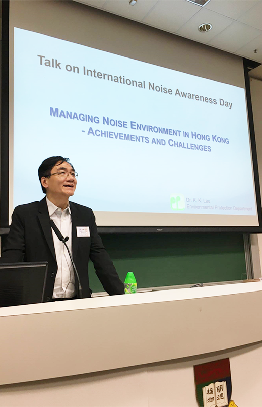 27 4 月, 2017 1072 Views Media, Past Events Talks on International Noise Awareness Day Speakers:Dr. Daniel Fong, Associate Professor (HKU)Prof. Kin Che Lam, Adjunct Professor (CUHK)Dr. K.K. Lau, Principal Environmental Protection Officer (Environmental Protection Department)